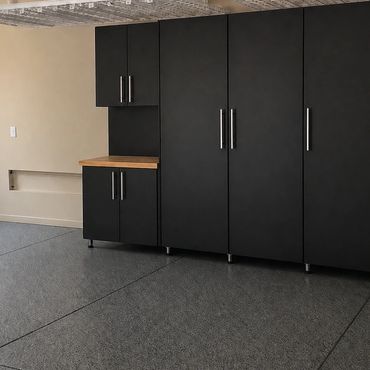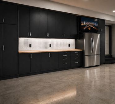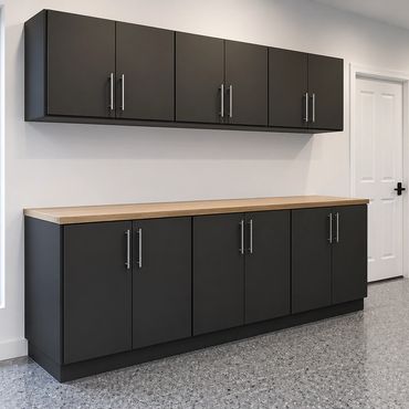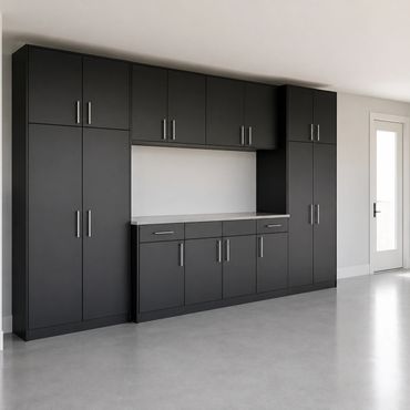 Black creates a sharp, minimalist backdrop that defines the space with authority. It is a high-impact choice for those who want a garage that feels powerful, sophisticated, and incredibly clean.
